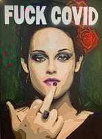 This painting was produced to show the lovely Kristen Stuart being her sassy self with a finger up to this dreadful virus .