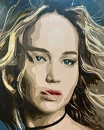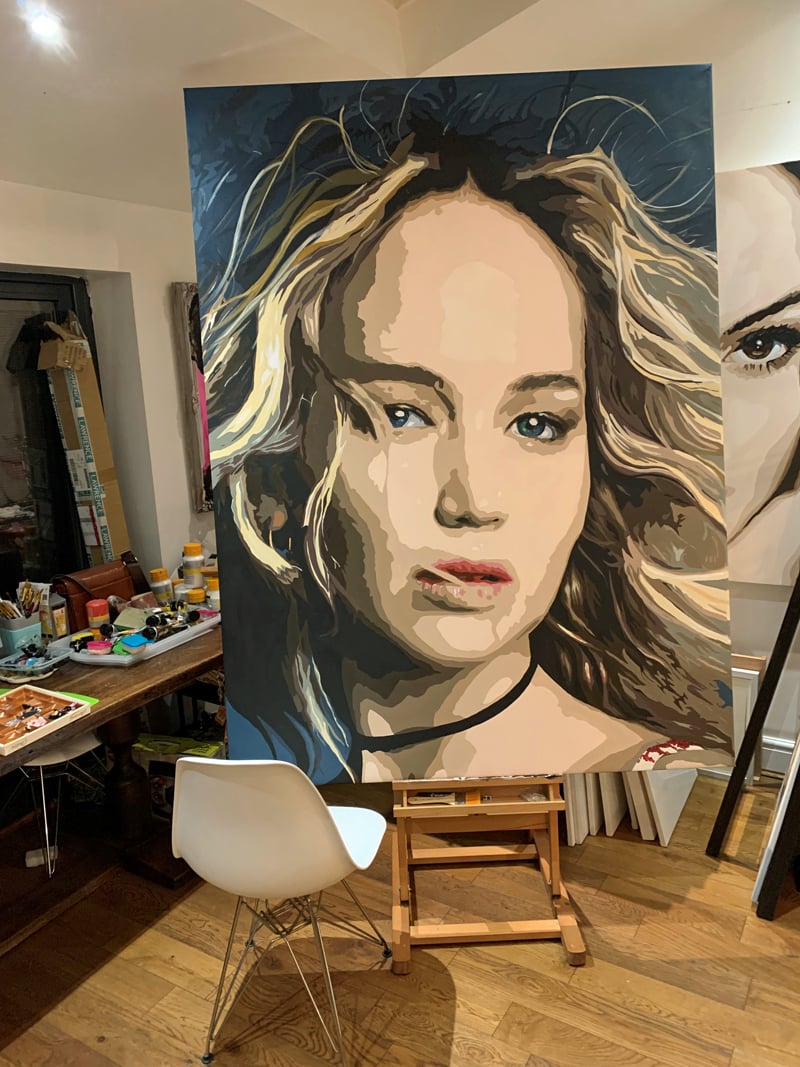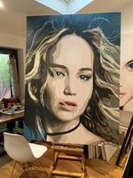This is my largest painting to date, and while I have always followed Jennifer Lawrence, I wanted to paint a picture of her as I was so inspired by her portrayal of Katniss Everdeen in the Hunger Games. Her tenacity, determination and her underdog status just shows, it doesn't matter where we come from, we can succeed if we rise up together and fight the power!