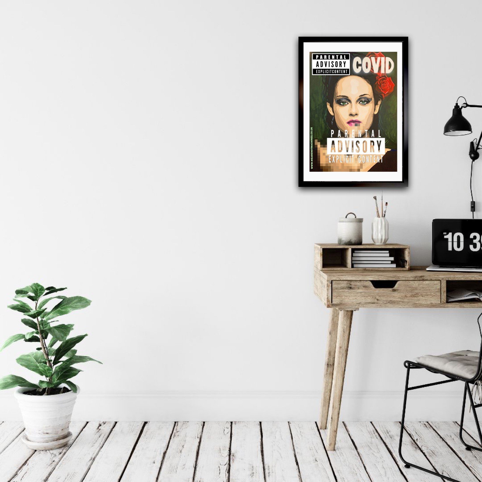 The original painting shows the words "F**K COVID" in very bold writing. This version aims to offer a filtered version which maybe more appropriate for some younger fans or those offended by swear words.